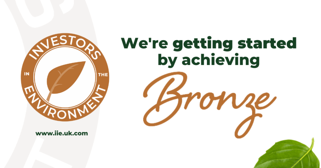 The work now begins towards achieving silver accreditation. Our next steps include further resource reduction, work on a travel plan and further improvement on our waste reduction. We’ll also look to provide more sustainability training for our team. As well as being highlighted by our Investors in Environment audit, these areas were raised by staff during a recent environmental survey completed by our team. Look out for updates on our actions and activities as we continue on our environmental journey.